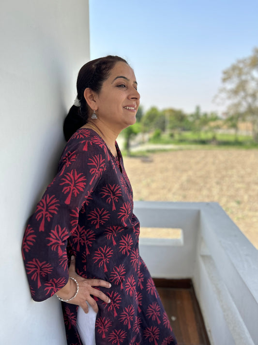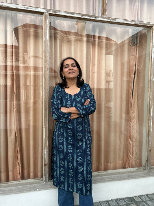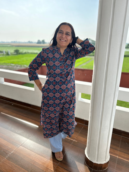 Blue Rust Ajrakh Cotton Kurta