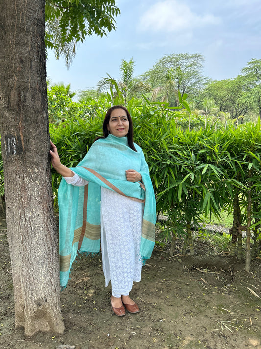 Ferozi Blue Tussar Silk Dupatta