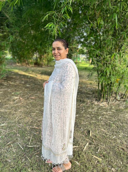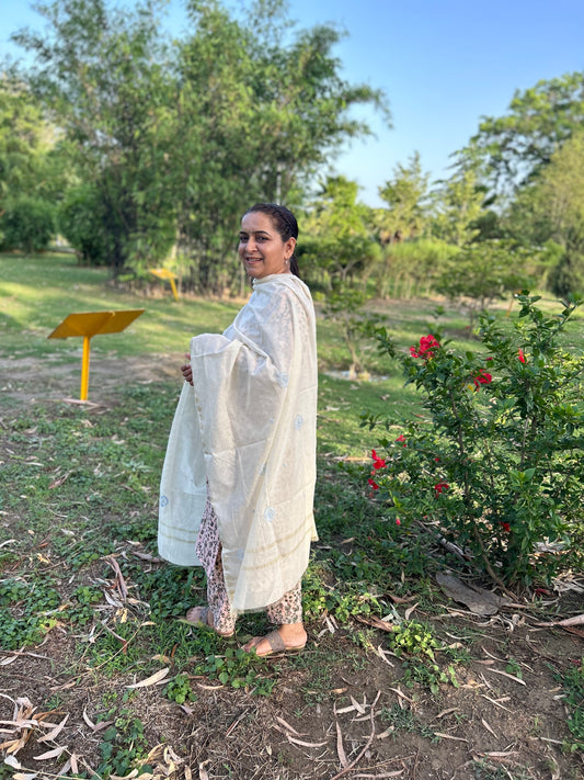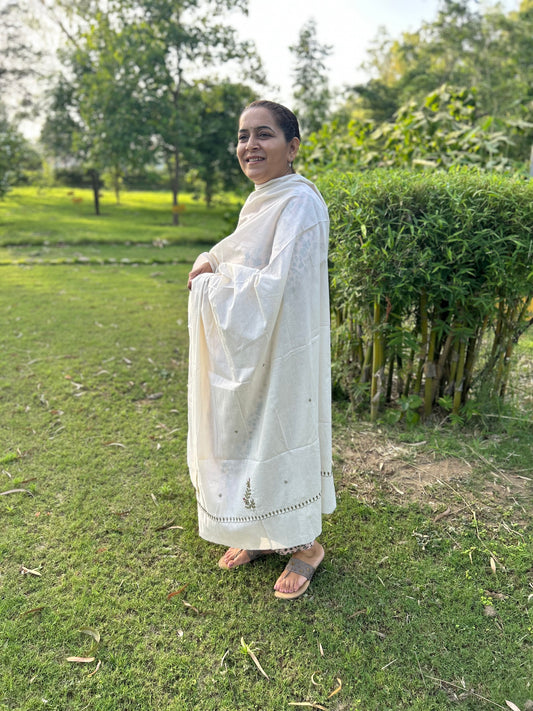 Off White Chanderi Chikankari Dupatta