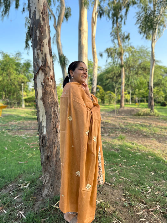 Light Brown Cotton Voile Chikankari Dupatta