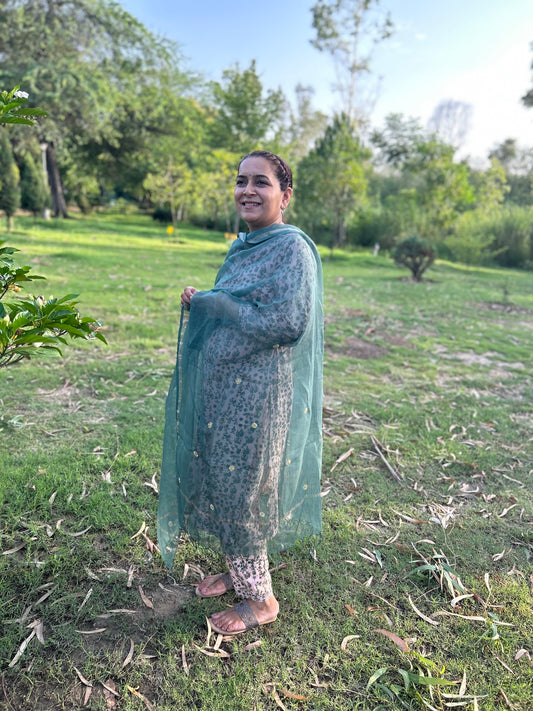 Green Chanderi Chikankari Dupatta