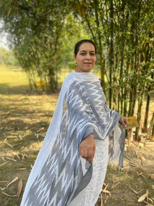 Grey Ikat Dupatta