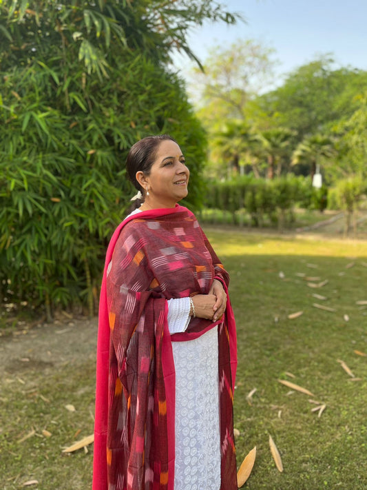 Red Handwoven Ikat Dupatta