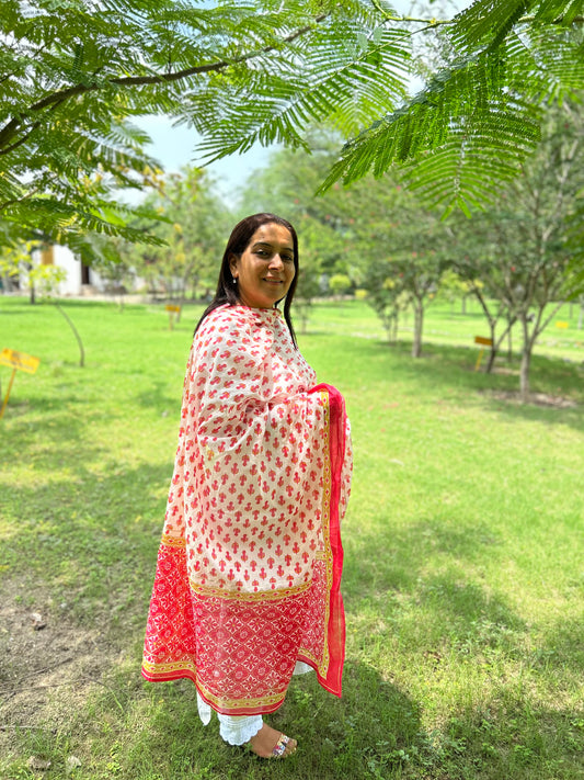 Red Block Printed Dupatta