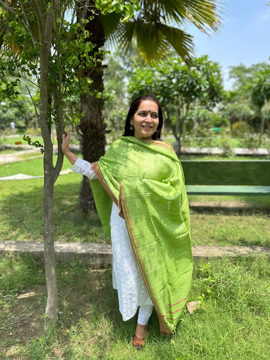 Parrot Green Hand Woven Ghicha Silk Dupatta