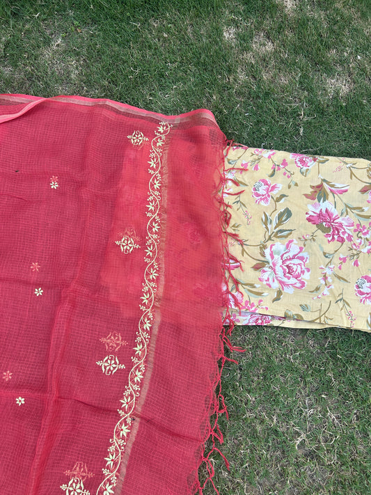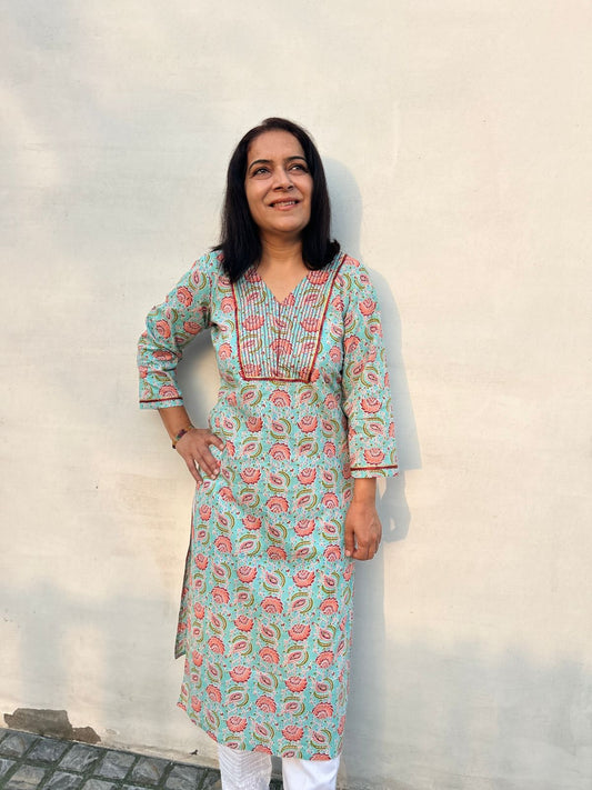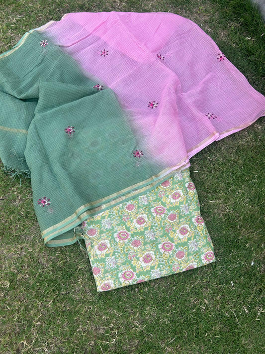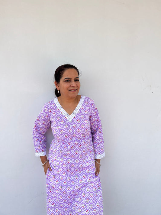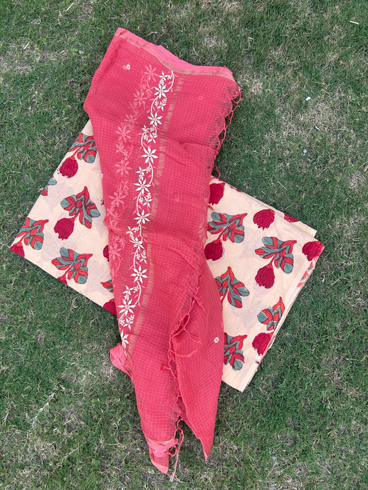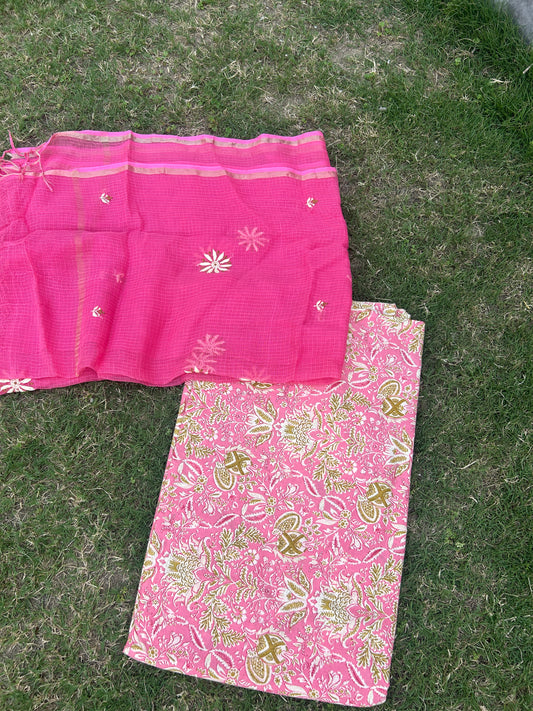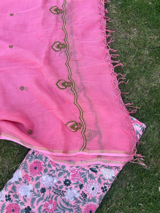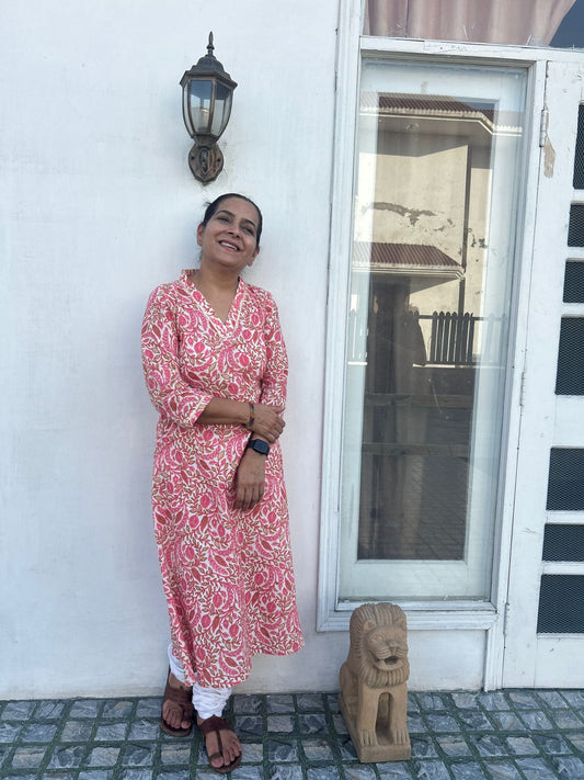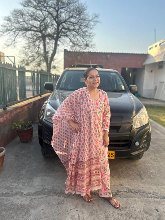 Pink Cotton Block Printed Kurta Set (3PC SET)